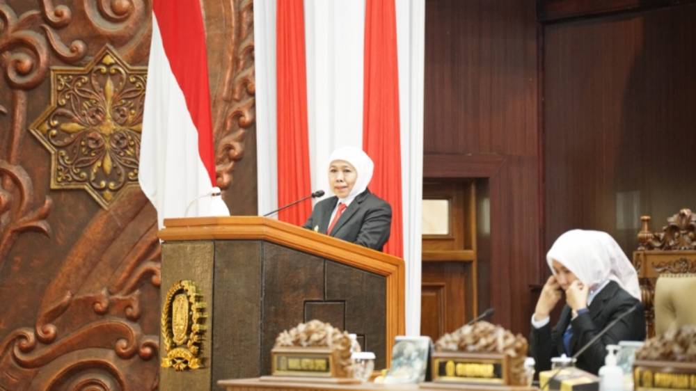 Rapat paripurna tersebut dipimpin oleh Ketua DPRD Jatim Musyafak Rouf, didampingi para wakil ketua dewan. Saat doa bersama berlangsung, suasana ruang rapat paripurna seketika menjadi hening. Seluruh peserta menundukkan kepala dan mengikuti doa yang dipimpin langsung oleh Khofifah.