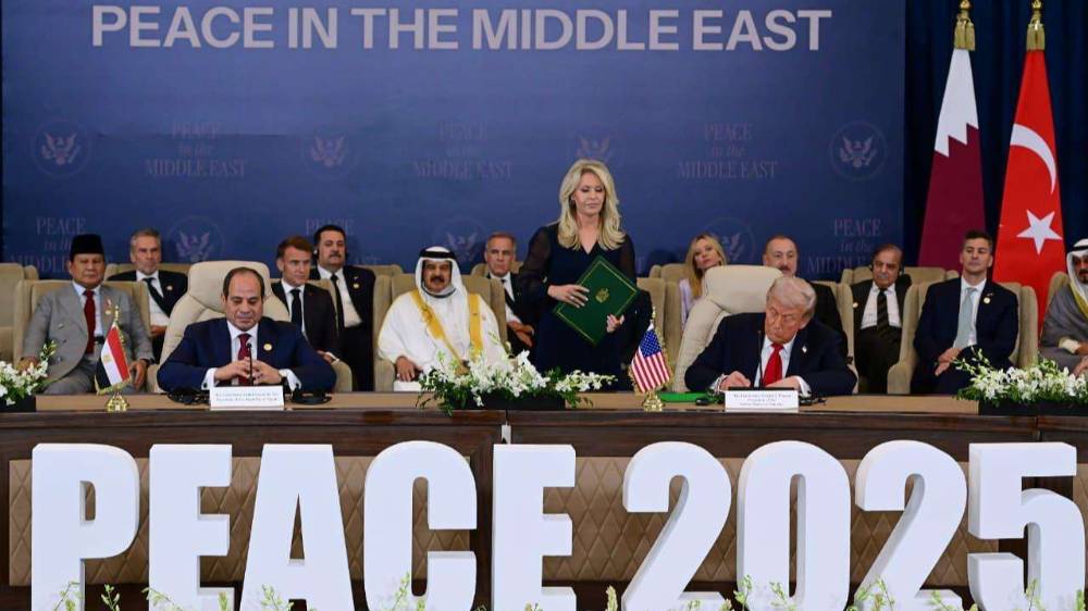 Usai sesi foto, para pemimpin dunia menuju ruang utama untuk menyaksikan penandatanganan dokumen perdamaian. Penandatanganan dilakukan oleh Presiden Trump, Presiden El-Sisi, Presiden Erdogan, dan Emir Qatar Syekh Tamim bin Hamad Al Thani. Presiden Prabowo tampak duduk di barisan depan, bersebelahan dengan Presiden Macron, menyaksikan langsung momen bersejarah tersebut.