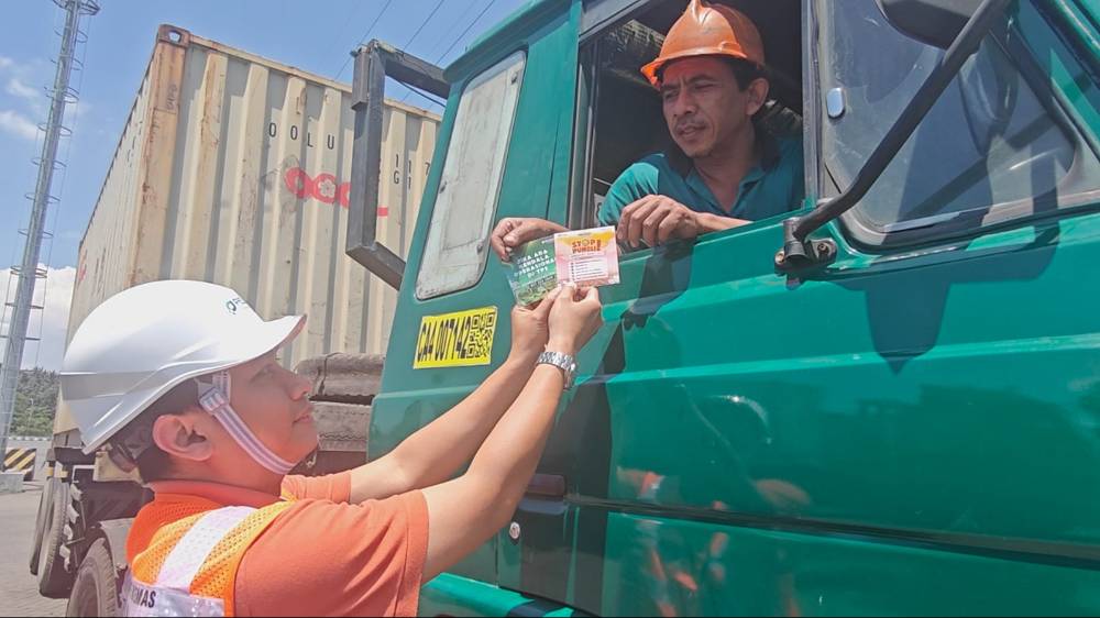 Selain sosialisasi, TPS juga membagikan perlengkapan keselamatan berupa helm dan rompi kepada para pengemudi sebagai bentuk dukungan terhadap keselamatan kerja dan budaya disiplin di kawasan pelabuhan.