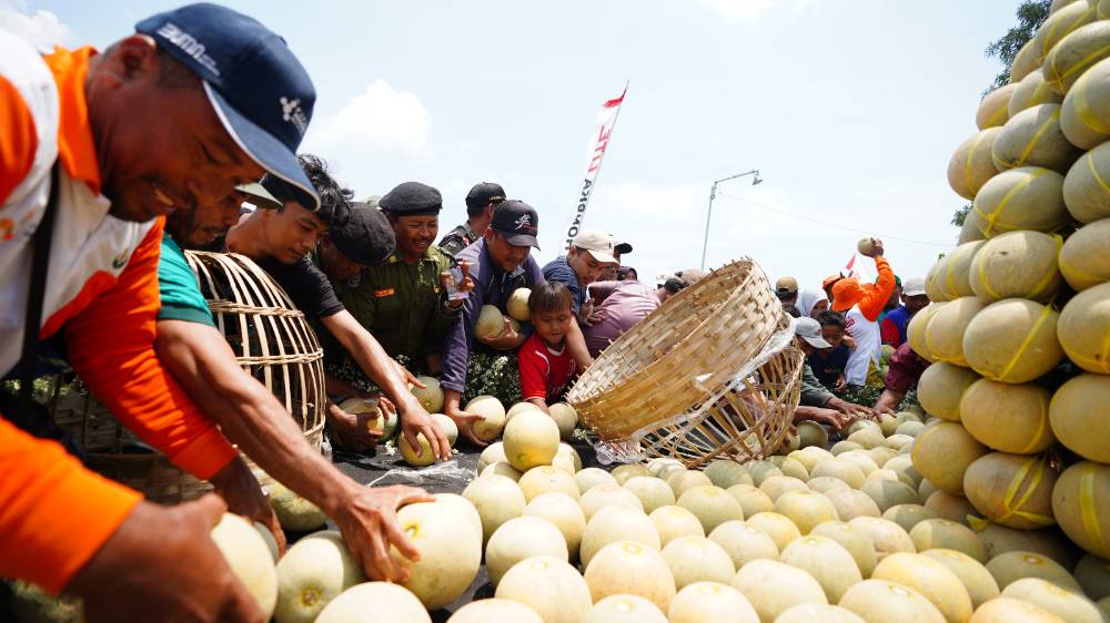 Acara ditutup dengan kegiatan simbolis berupa panen raya, penandatanganan mural komitmen budidaya berdaya saing, hingga pawai tumpeng melon yang meriah. (XRY)