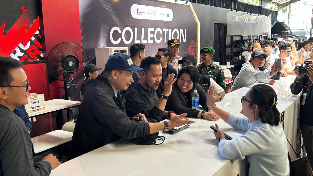 Kegiatan kemudian dilanjutkan dengan penyerahan race pack perdana kepada para pelari yang telah hadir dan mengantre di lokasi.